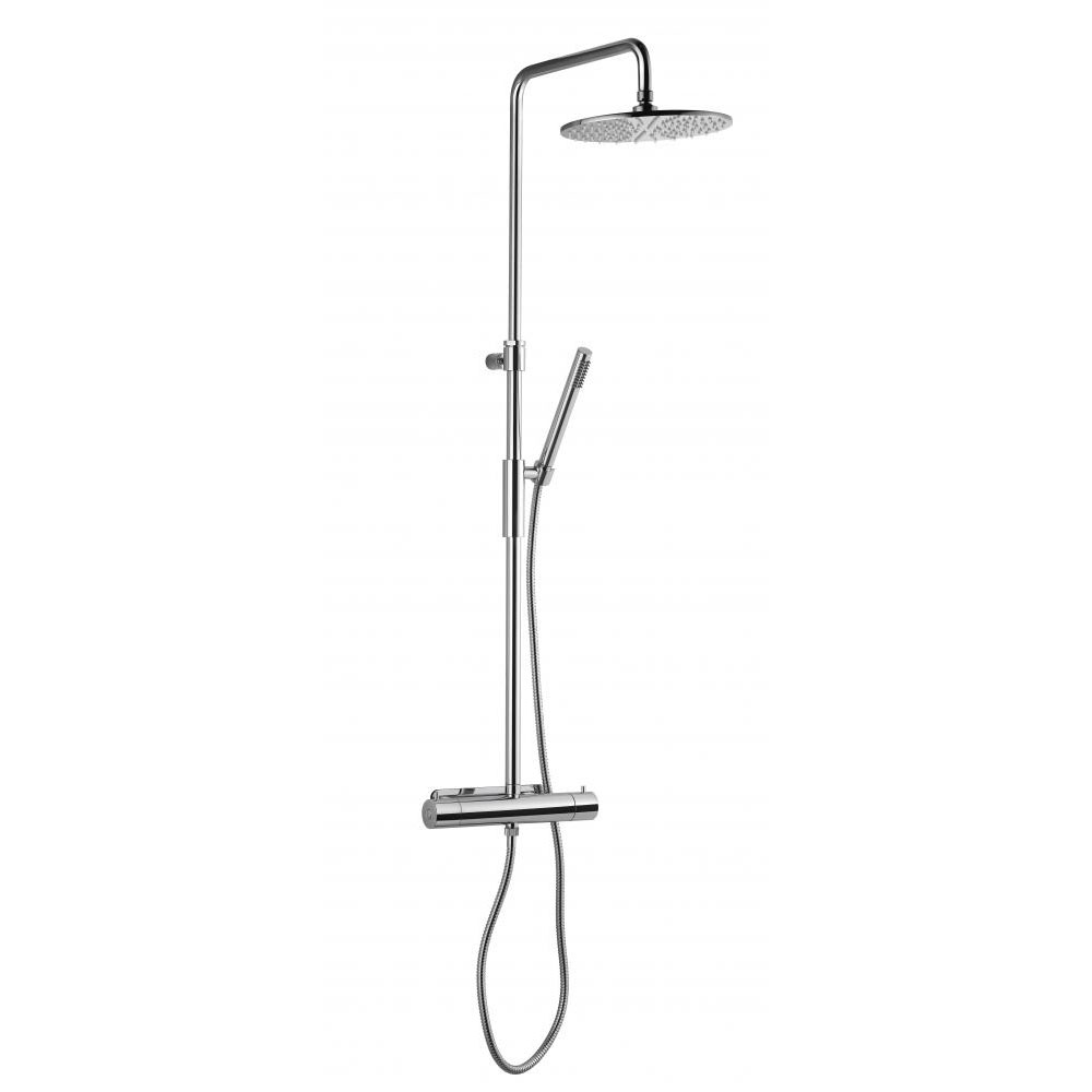 Takduschpaket med tryckbalanserad termostat och omkastare i vred. Höj- och sänkbar. Extra handdusch medföljer. 160cc.